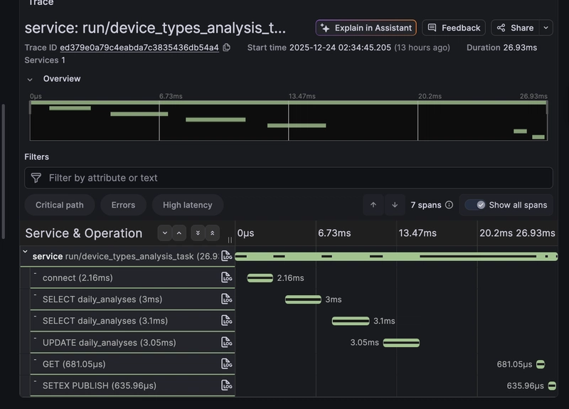 - Production-ready tracing: Full distributed tracing across all services